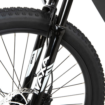 Our suspension fork features 100mm of travel, compression adjustment.It effectively absorbs most of the jarring bumps and shocks, especially on complicated and rugged routes, reducing your tiredness and allowing you to ride faster.