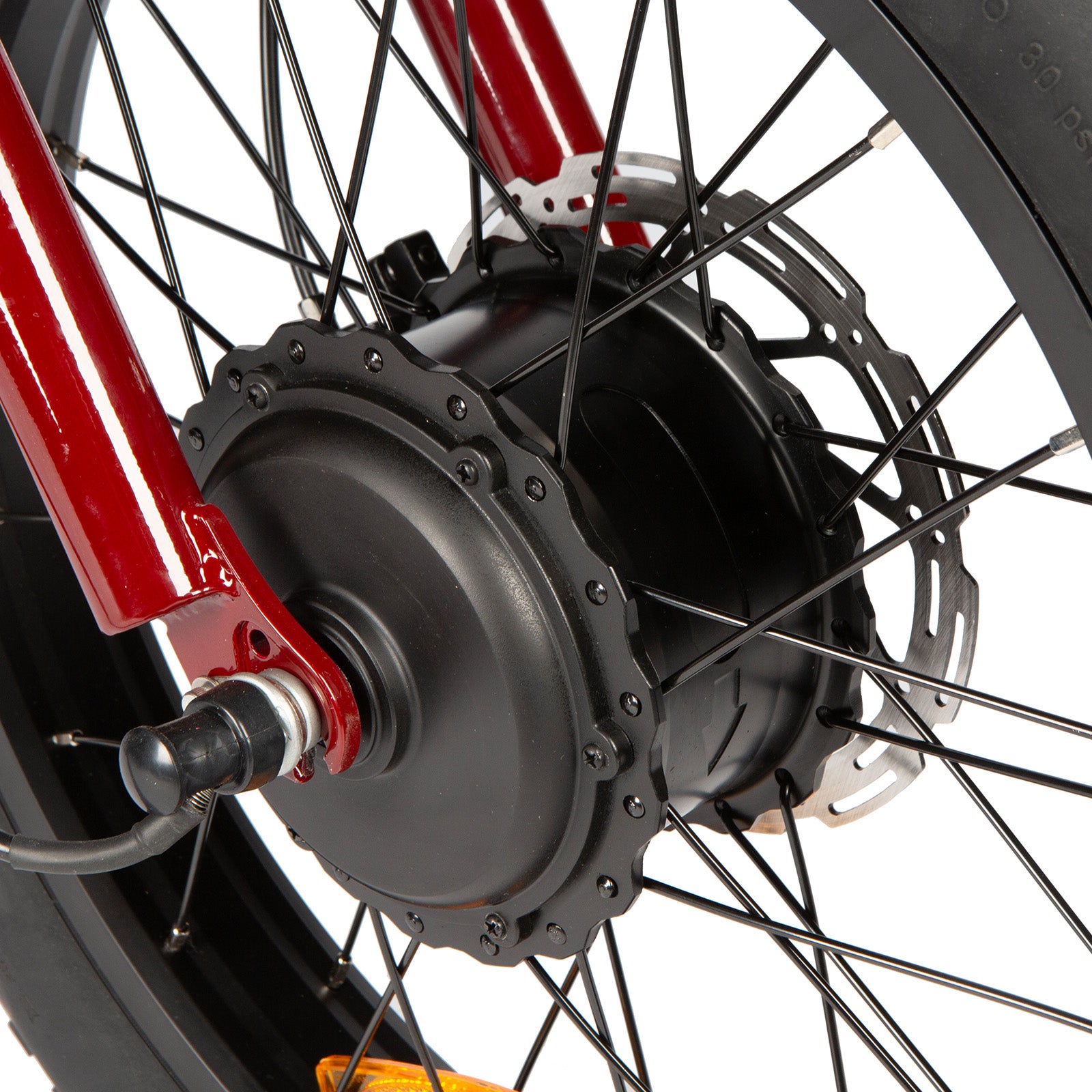 A hub motor in the front wheel can crank out a continuous 500 watts of power with the ability to ratchet things up to over 750 peak watts of power for hill climbs and quicker acceleration. This motor has 80 Newton meters of torque.