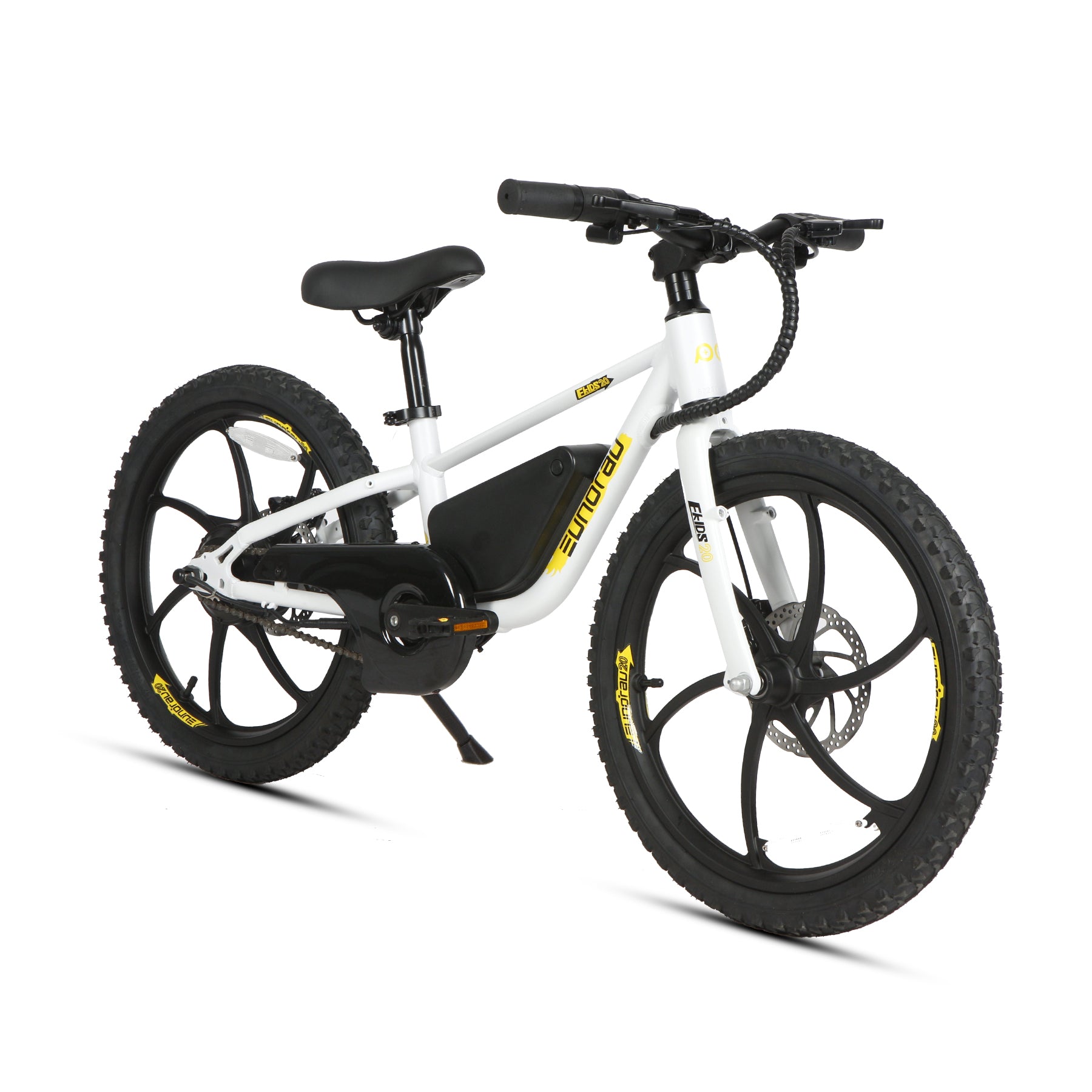 The EKIDS-20 is equipped with a front and rear dual-disc brake system, providing an added layer of safety and security for children while they enjoy their rides.