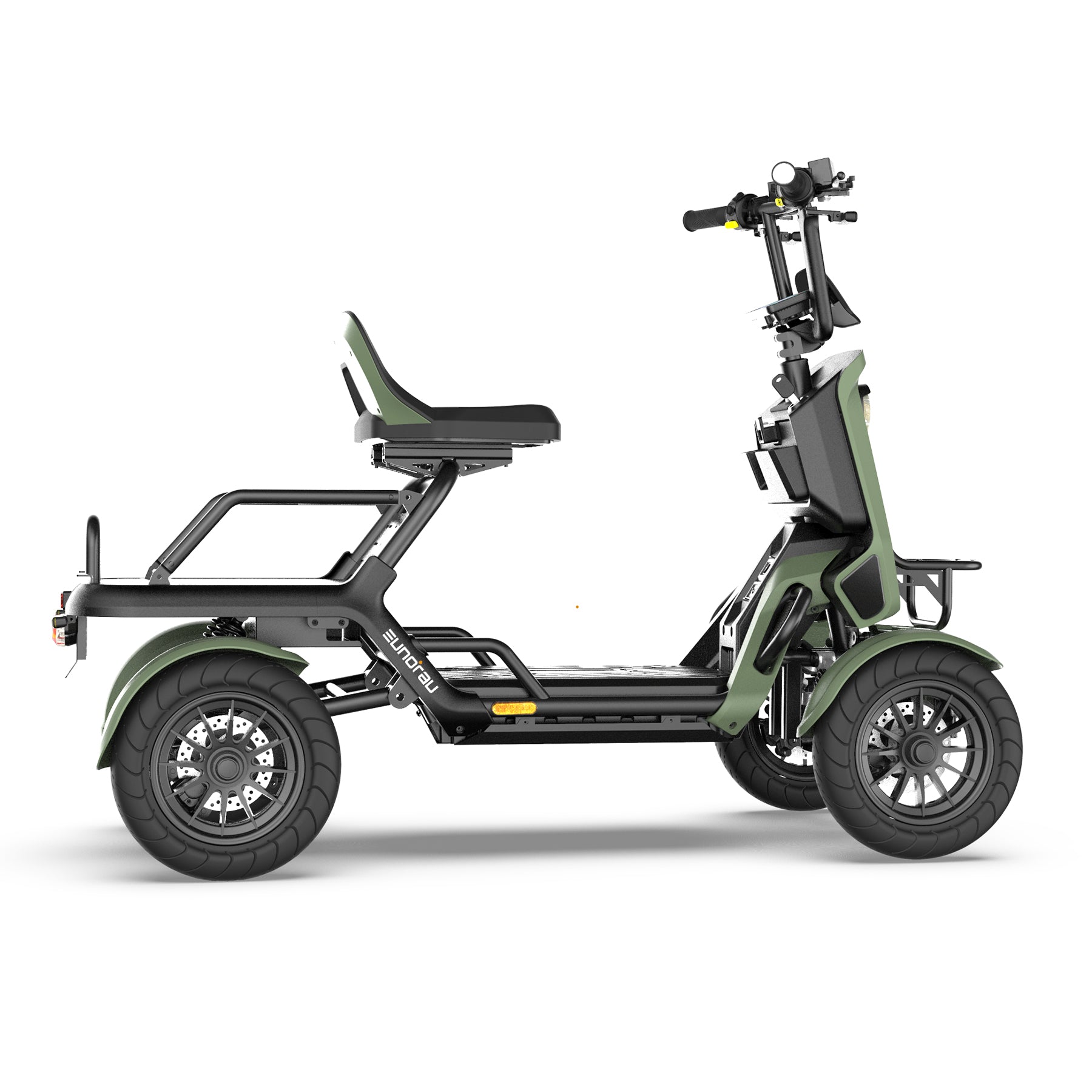 Our 4-wheel e-bike is super stable and safe. You don’t have to worry about tipping over, even if you’re carrying groceries, camping gear, or a friend. It’s perfect for anyone who wants a stress-free, comfortable ride.